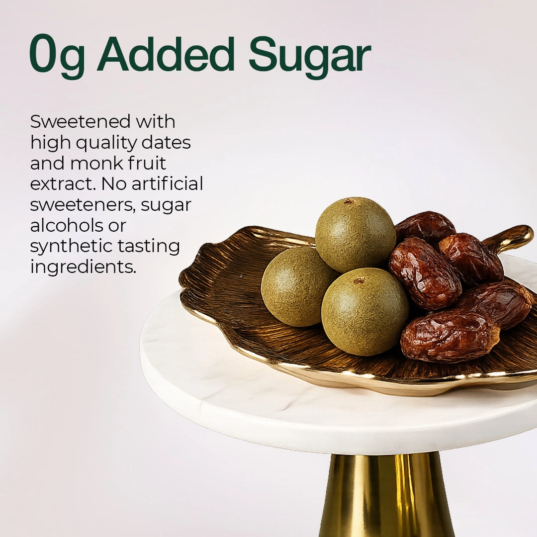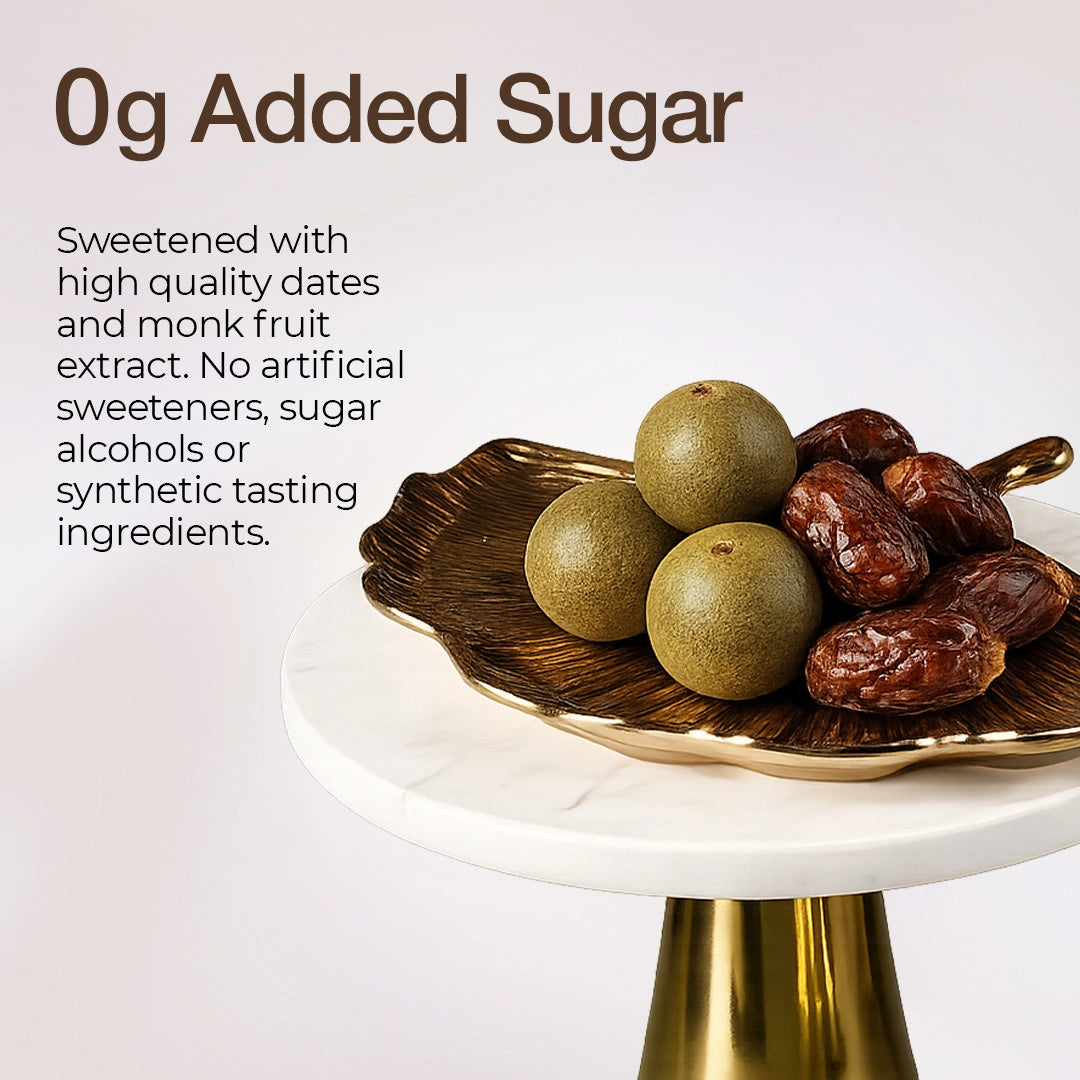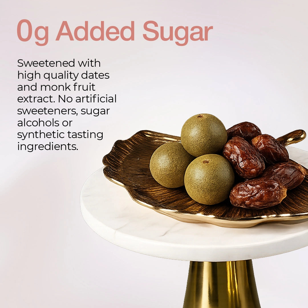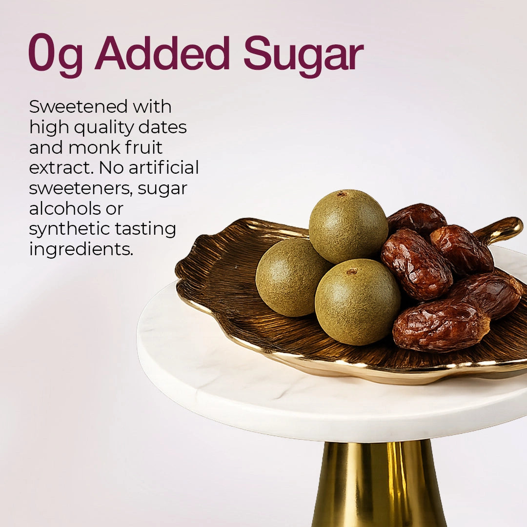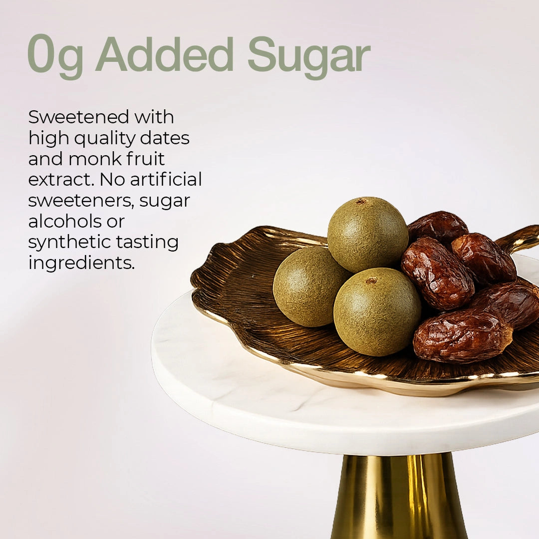0g added sugar. Nothing fake.No sugar alcohols, no hidden calories, no aftertaste.