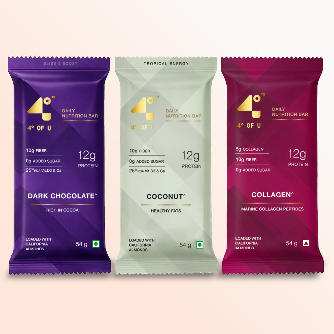 India's first beauty-focused nutrition bar that supports glowing skin, happy joints, and lasting energy. For Glowing Skin India's first protein bar with premium marine collagen to give your skin firmness, elasticity and hydration, leaving it with a radiant glow that you'll love. Helps replenish depleting collagen, without using chemical supplements. Designed for Women High protein (15g), high fiber (10g) and 0g added sugar, all the while giving you complete nutrition for your metabolic, bone, muscular and hormonal health. Anti-inflammatory Science-backed blend of Turmeric & Ginger help manage your body's inflammation levels. Black pepper ensures you absorb the Curcumin from the Turmeric better. Stronger Bones Enriched with 25% of your daily dose of Calcium & Vitamin D3, critical for bone health & immunity. Digestive Fiber Whole Chia & Flax seeds are the fiber powerhouses in every bar which work to keep your digestive track moving.