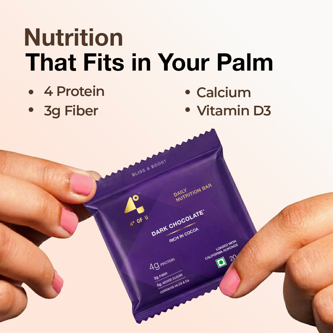 Rich cocoa paired with nutrient-packed goodness - your daily guilt-free dose of chocolate! Designed for Women High protein (12g), high fiber (10g) and 0g added sugar, all the while giving you complete nutrition for your metabolic, bone, muscular and hormonal health. Anti-inflammatory Science-backed blend of Turmeric & Ginger help manage your body's inflammation levels. Black pepper ensures you absorb the Curcumin from the Turmeric better. Stronger Bones Enriched with 25% of your daily dose of Calcium & Vitamin D3, critical for bone health & immunity. Digestive Fiber Whole Chia & Flax seeds are the fiber powerhouses in every bar which work to keep your digestive track moving.