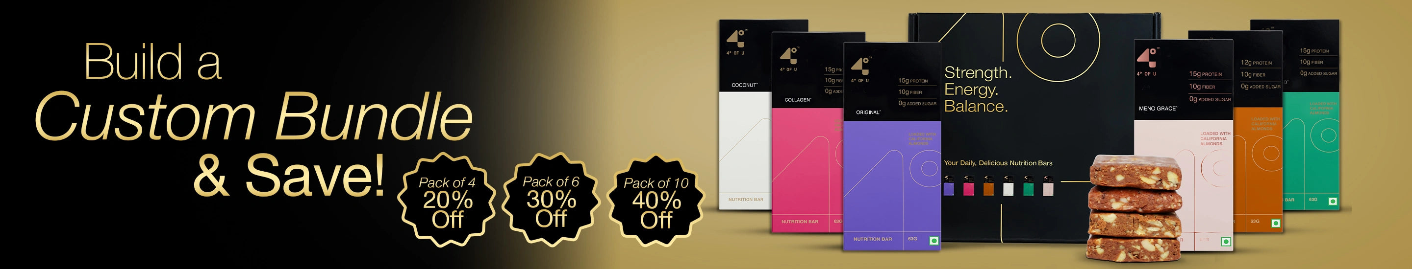 Pick your favorites, skip what you don’t. With a minimum of 4 bars, you get to build your own 4° Of U bundle exactly the way you like it. Mix flavors, match moods, and keep your box as unique as your routine. Because your bundle should fit your life—not the other way around.
